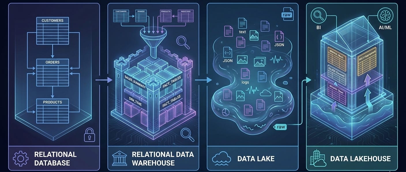 In bygone days, relational databases were the undisputed kings of the data world. They were, and still are, fantastic at running the daily operations of a business, like processing orders, managing inventory, or updating customer records. We refer to these as operational or transactional (aka OLTP, which stands for online transactional processing) systems, and they must be lightning-fast. When a customer places an order, you can’t have them waiting around.