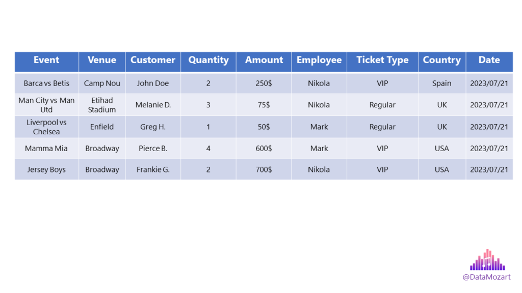 User-friendly data navigation – as users, we often get it easier when thinking about the business process in terms of the subjects that are part of the process. Which event sold the most tickets in the 2nd quarter of the last year? How many tickets were bought by female customers for the Champions League final game? Which employee in the USA sold the most VIP tickets for the Super Bowl in 2022? And, many more of course…