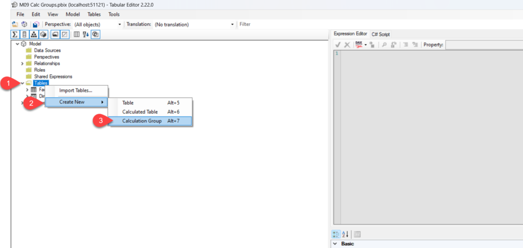 Creating Calculation groups can be done in multiple ways. First, you may use Power BI Desktop to create Calculation Groups: