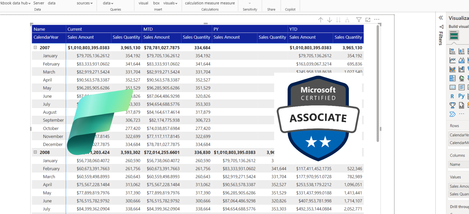Remark: Similar behavior with switching between different measures (Sales Amount and Sales Quantity) in the matrix visual can also be achieved with the Field parameters feature, which we will examine in the next article.