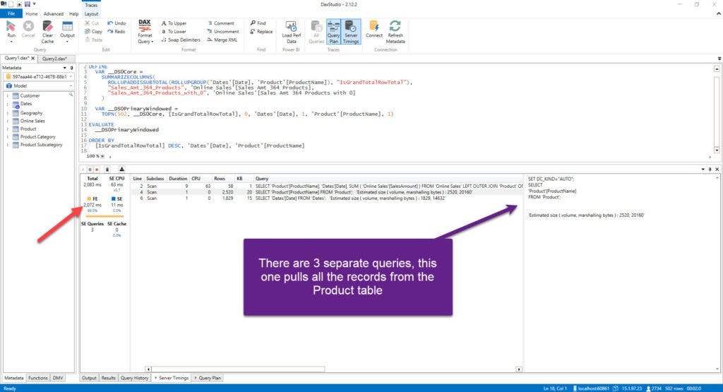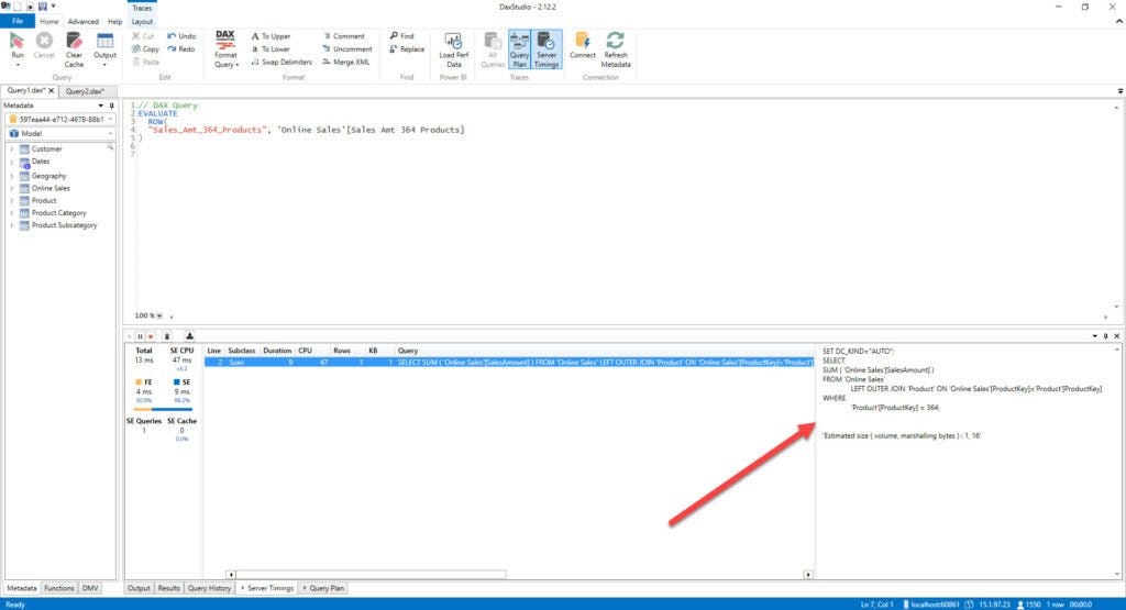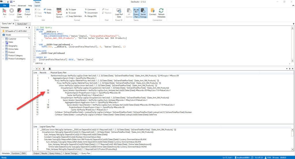 This was again very fast! I will now check the metrics within the DAX Studio: