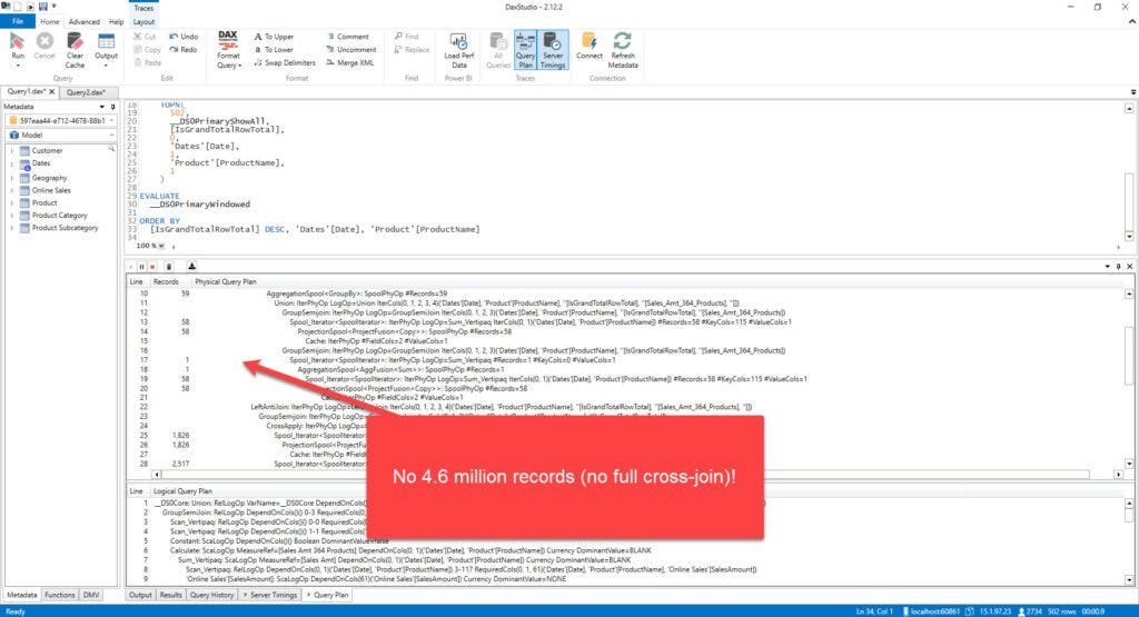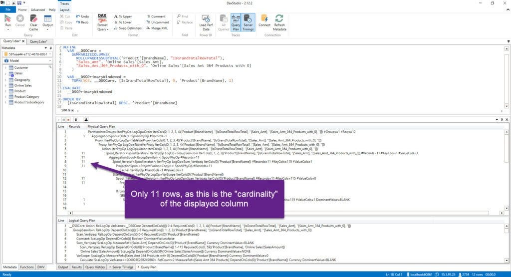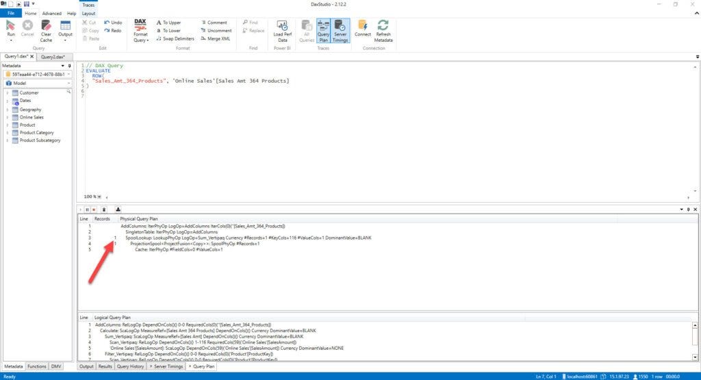 Hm, looks like we didn’t have to pay any penalty in terms of performance. Let’s check the query plan for this DAX query: