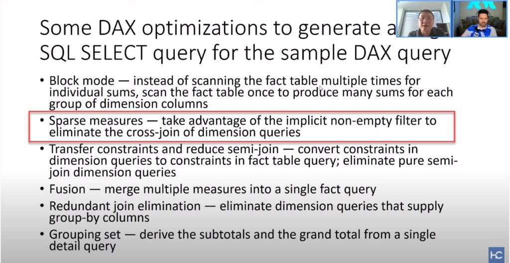 Some time ago, I was watching Jeffrey Wang as a live stream guest with Reid Havens, and one of the dozen wonderful things that Jeffrey shared with the audience was the list of optimizations that the DAX engine performs when creating an optimal query plan for our measures.